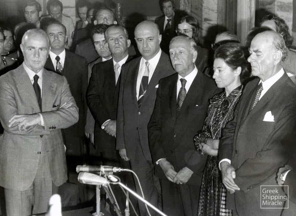 Στις 24 Ιουλίου 1974, μετά από έντεκα χρόνια αυτοεξορίας στο Παρίσι, ο Κωνσταντίνος Καραμανλής επέστρεψε στην Ελλάδα για να αναλάβει το έργο της αποκατάστασης της δημοκρατίας. Στην προσπάθειά του εκείνη είχε τη στήριξη των περισσότερων Ελλήνων, αλλά και την αποφασιστική συνδρομή της ναυτιλιακής κοινότητας.